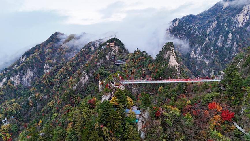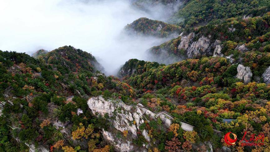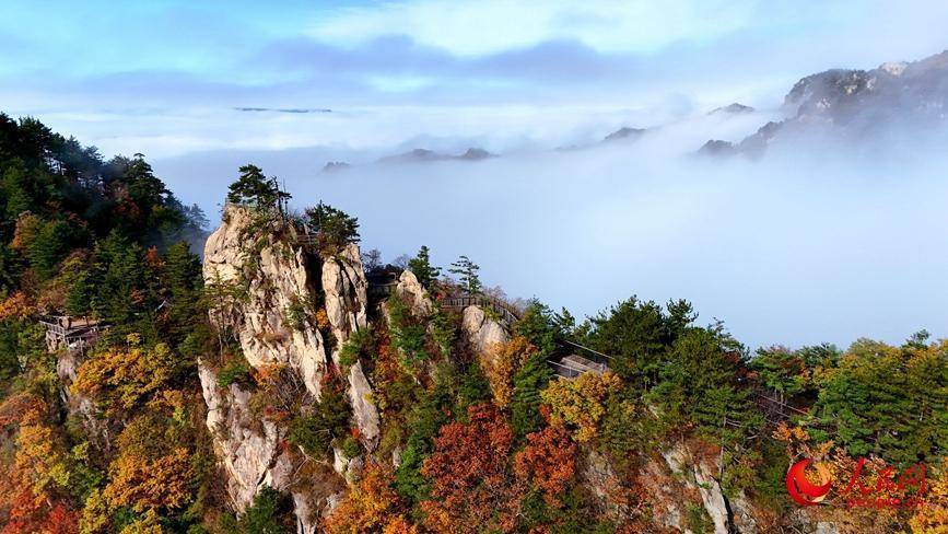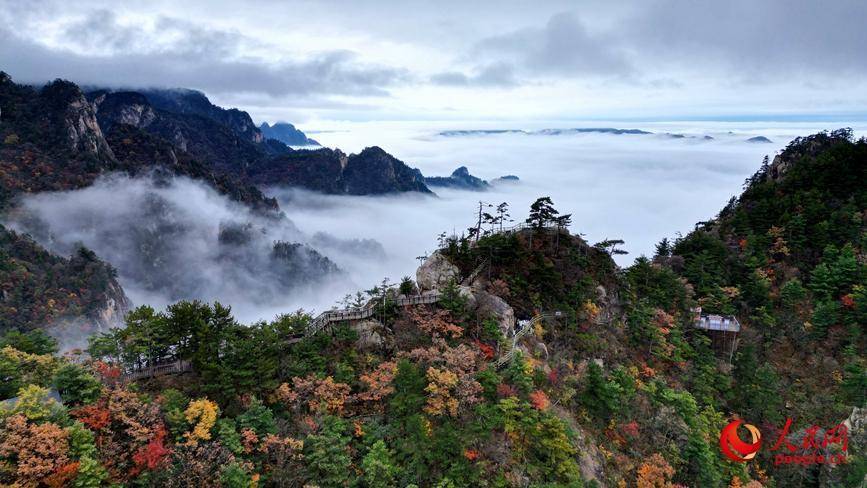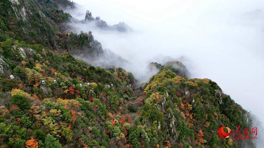 老界岭万亩彩林进入最佳观赏期。人民网记者 尚明桢摄人民网南阳11月10日电 (记者尚明桢、宋芳鑫)初冬时节,河南南阳老界岭景区万亩彩林进入最佳观赏期。红黄绿三色交织如天然调色盘,与云海相映成趣,更有“一山跨南北,半秋半冬”的独特奇观。10月中旬至11月下旬,正是邂逅老界岭万亩彩林的黄金时段,为让游客感受这场斑斓的视觉盛宴,景区免门票政策将持续至年底。